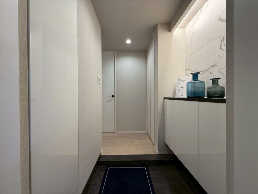 玄関は家全体の印象を決める重要な空間ですが、この小さなタイルゾーンが、ゲストを迎える際のアイキャッチとして機能し、空間に上質な雰囲気と個性を加えています。
