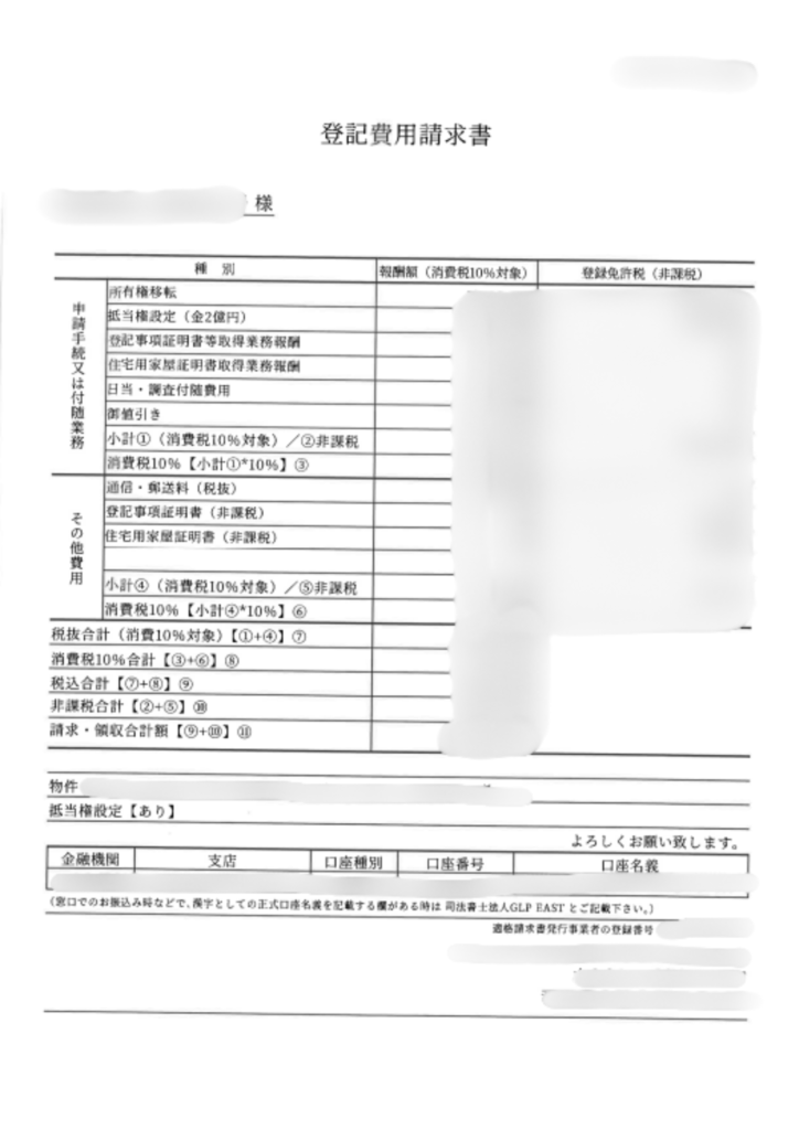 | 司法書士報酬 | 権利に関する登記(所有権移転・抵当権設定など)の代行を依頼した場合に支払う報酬 |